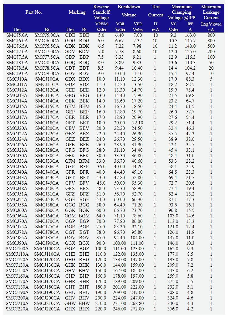 产品名称: 瞬态抑制器二极管TVS Diode