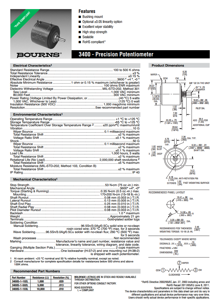 简述: BOURNS多转型精密电位器3400