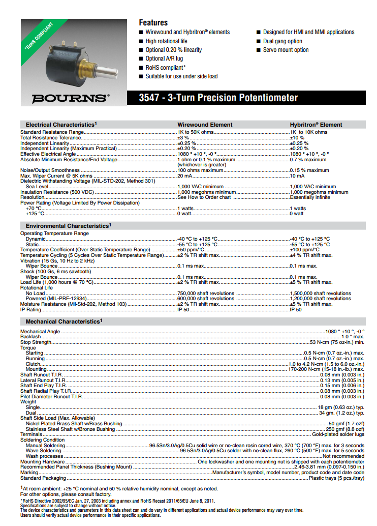 简述: BOURNS多转型精密电位器3547