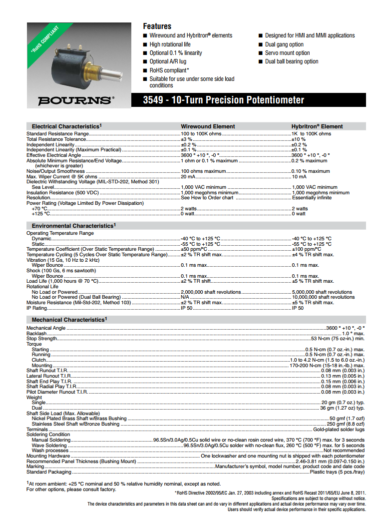 简述: BOURNS多转型精密电位器3549