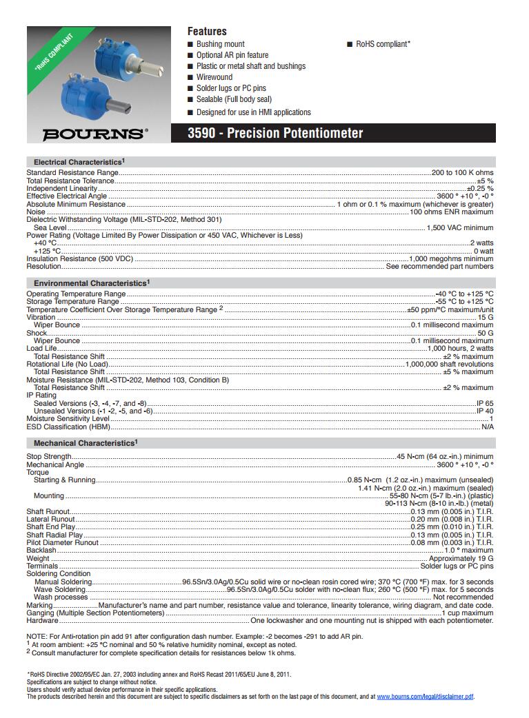 简述: BOURNS多转型精密电位器3590