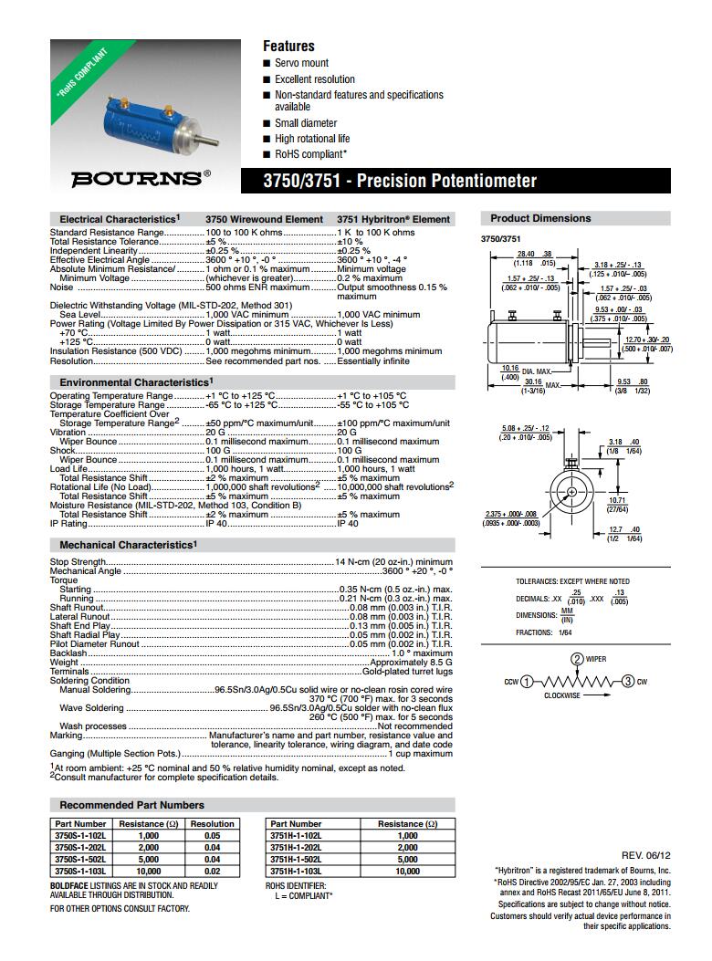 简述: BOURNS多转型精密电位器3750/3751