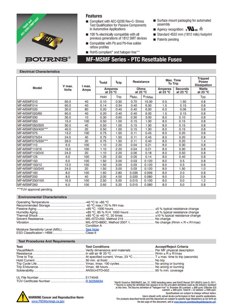 简述: BOURNS 车规保险丝 MF-MSMFAEC-Q200认证 车规认证保险丝 车规级保险丝