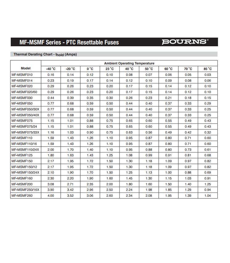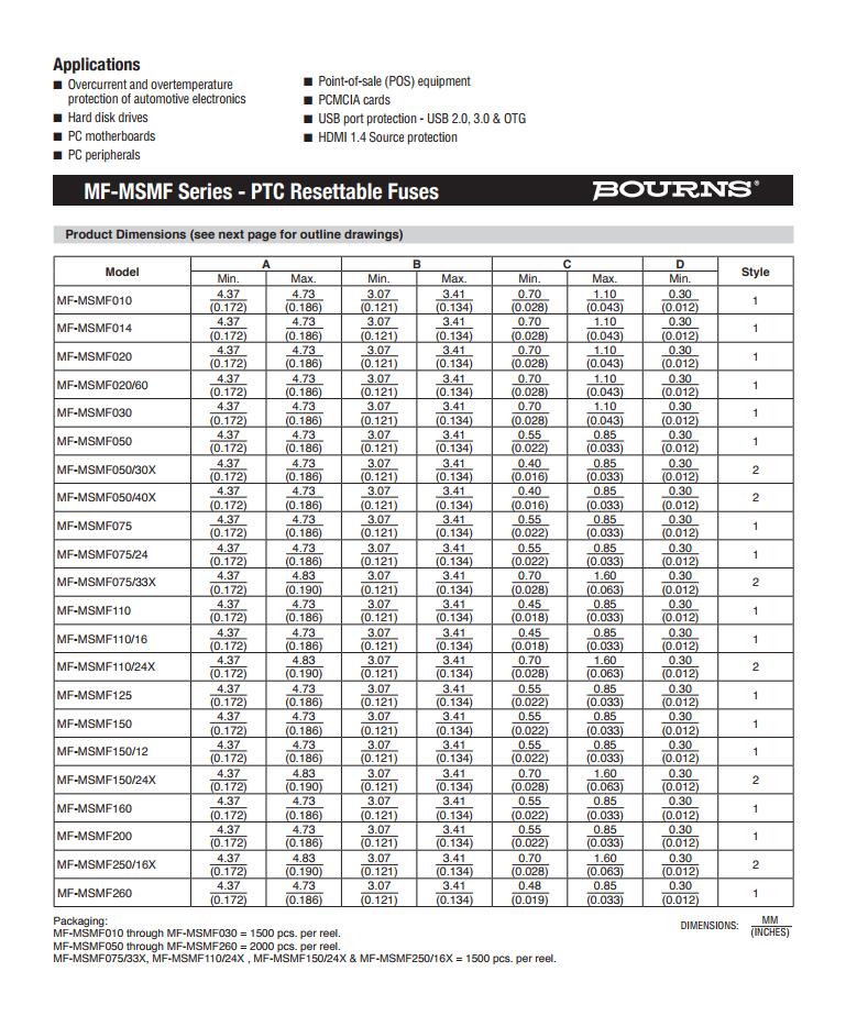 产品名称: BOURNS 车规保险丝 MF-MSMFAEC-Q200认证