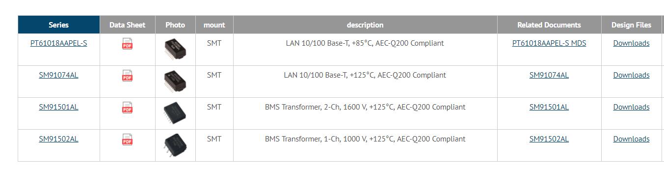 简述: 变压器 LAN - AEC-Q200 认证汽车应用