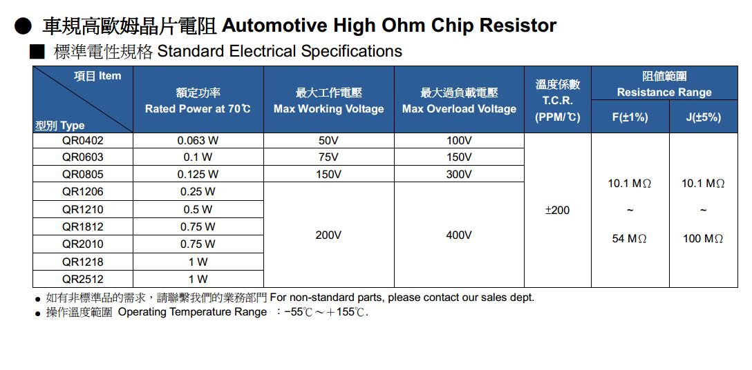 产品名称: 车规高欧姆电阻,车规搞欧姆晶片电阻