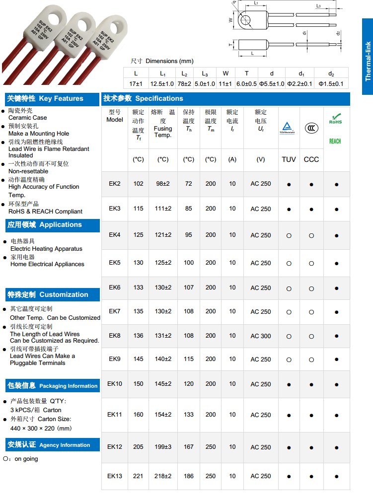 简述: 10A 陶瓷温度保险丝
