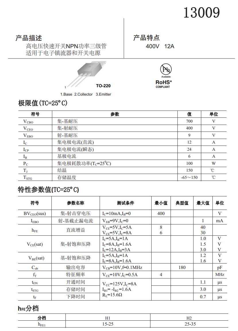 下一个:13007 400V 8A TO-220 高电压快速开关NPN功率三极管