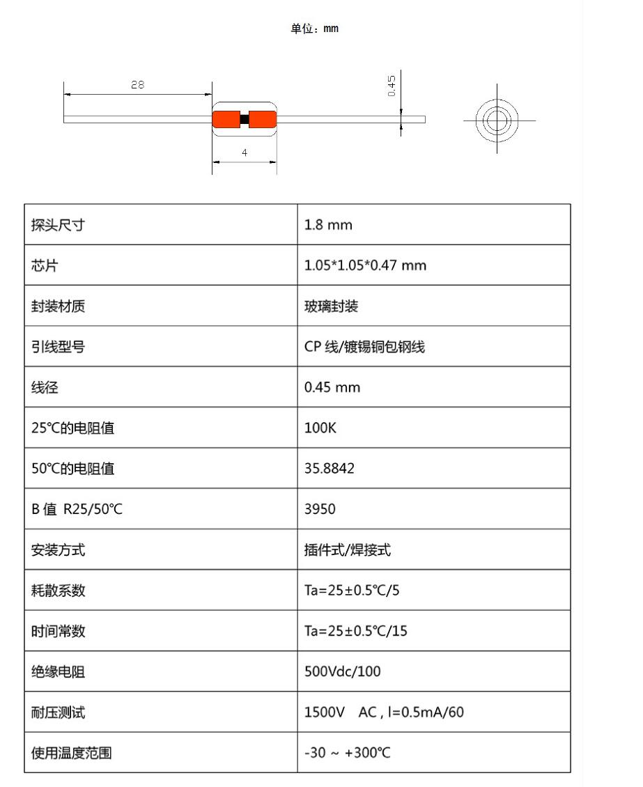 产品名称: ntc热敏电阻 MF58二极管 玻璃封装