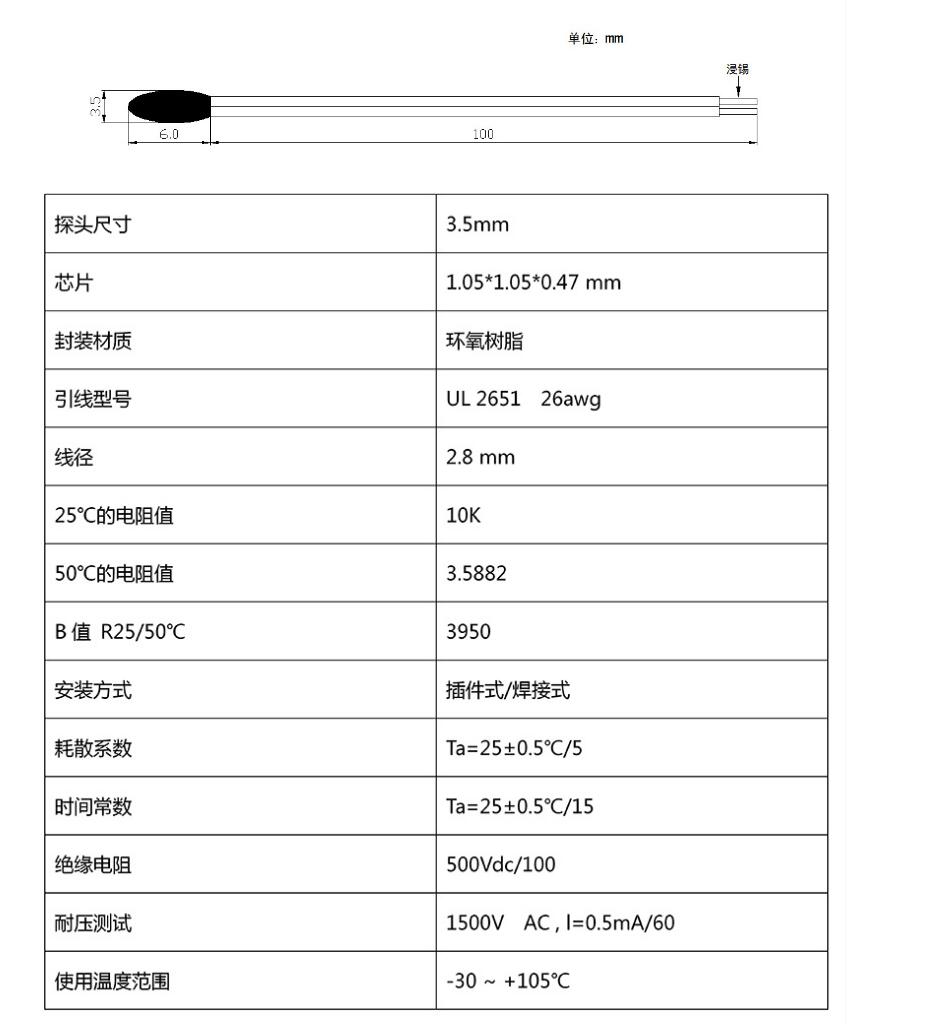 产品名称: ntc热敏电阻 CWF52小皮线 锂电池保护板常用电阻保护