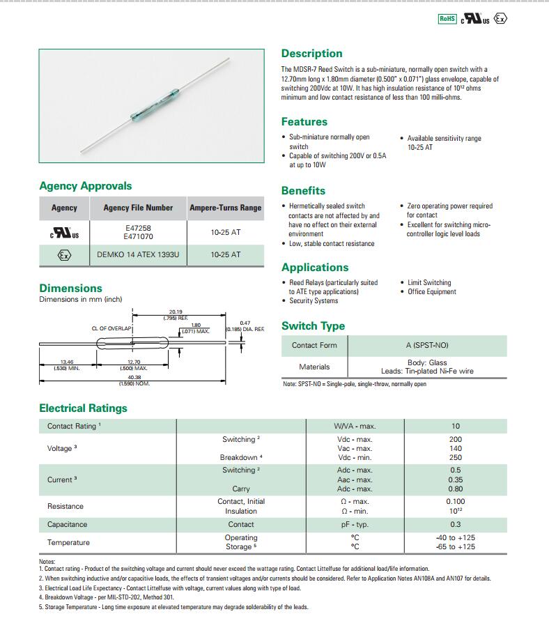 产品名称: MDSR-7 系列 - 12.7mm磁簧开关