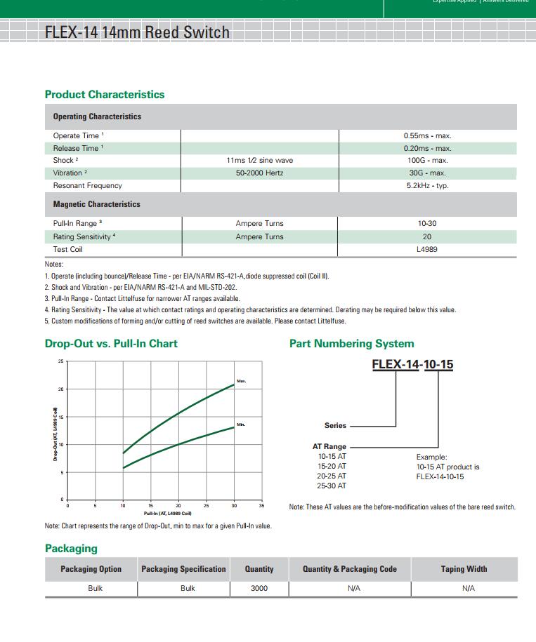 产品名称: FLEX-14 系列 - 14mm磁簧开关|HAMLIN|干簧管