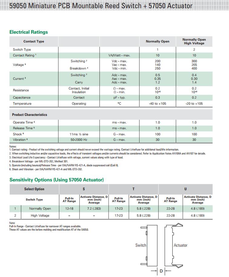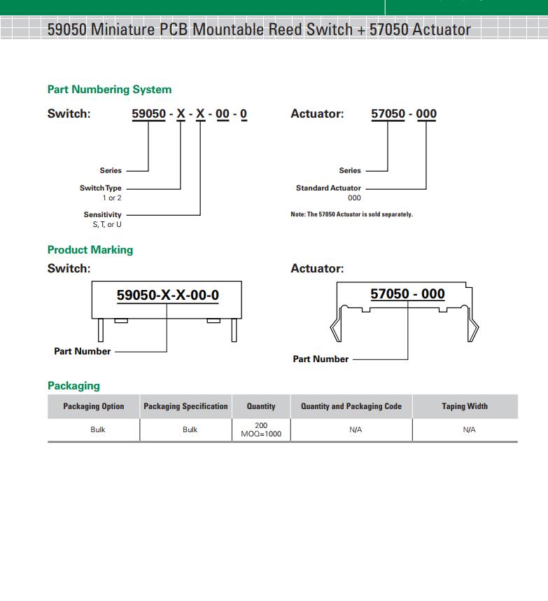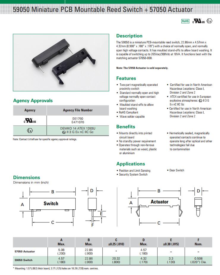 简述: 59050 系列 - PCB封装包覆成型磁簧开关|HAMLIN|干簧管