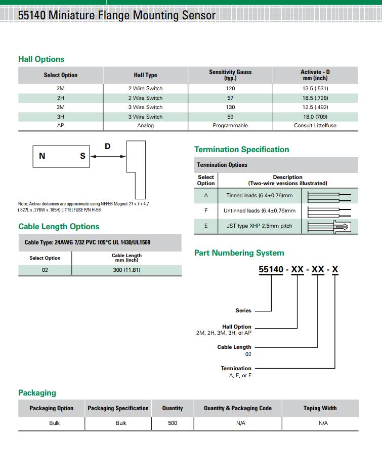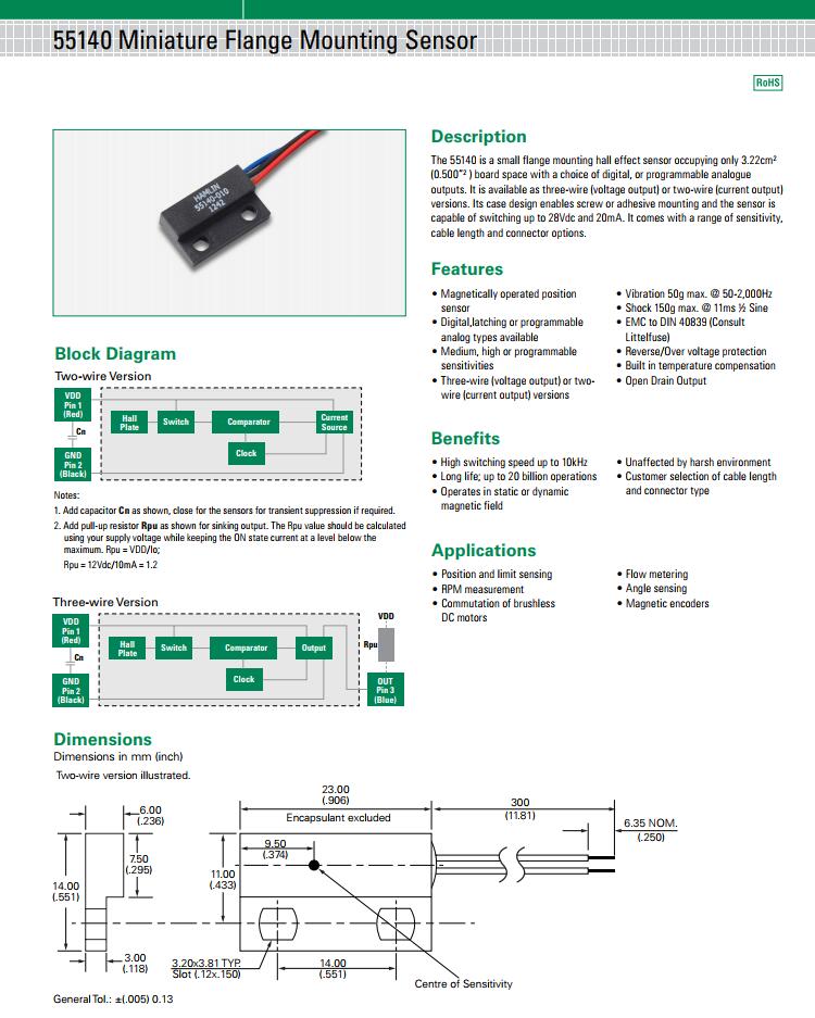 产品名称: 55140 系列 - 法兰安装式霍尔效应传感器