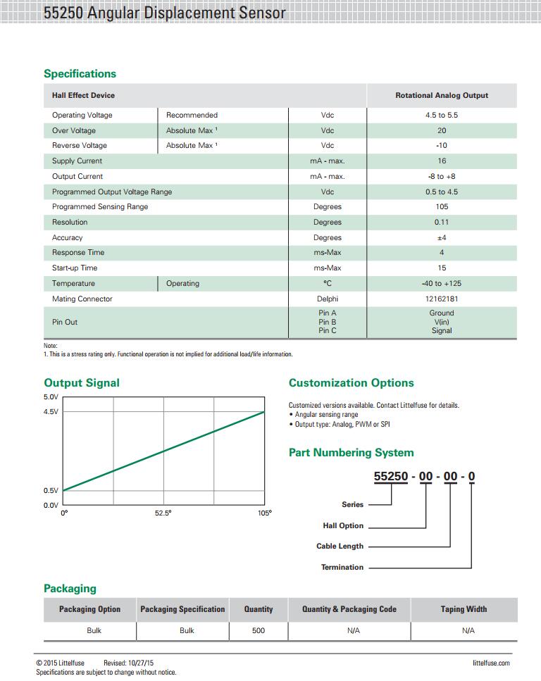 产品名称: 55250 系列 - 旋转式绝对位置传感器