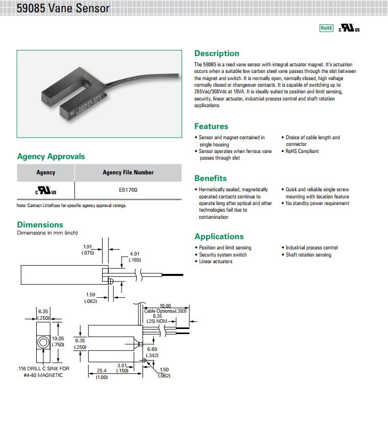 产品名称: 59085 系列 - 叶片磁簧传感器