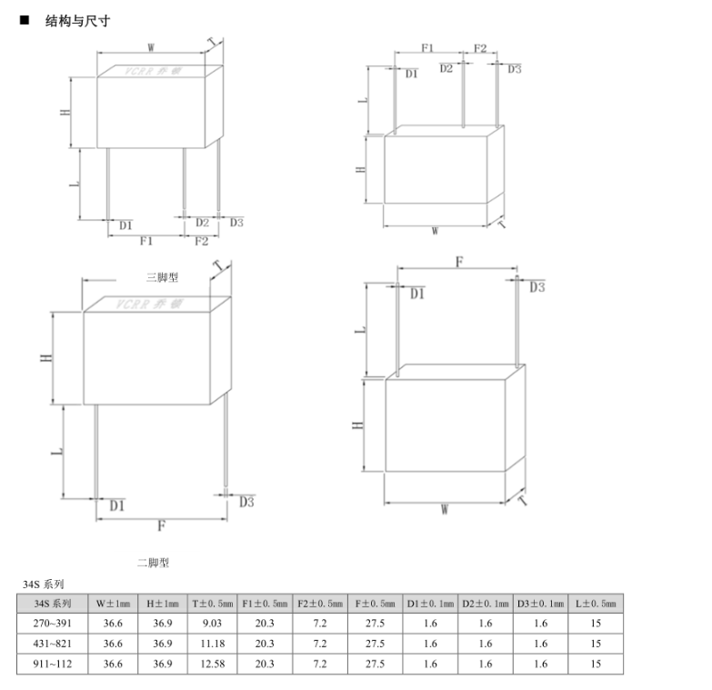简述: TBMOV34S系列 •压敏电压从(18V-1800V) •符合RoHS,Reach标准,无铅 •专利的集成热保护装置 - •旨在促进符合UL1449第3版SPD产品 •和促进符合IEC62368 ,IEC61643-331产品 •高峰值浪涌电流额定值高达40kA •波可焊 •标准引线形式和间距选项 •低泄漏 •-55°C至+ 85°C的工作温度范围