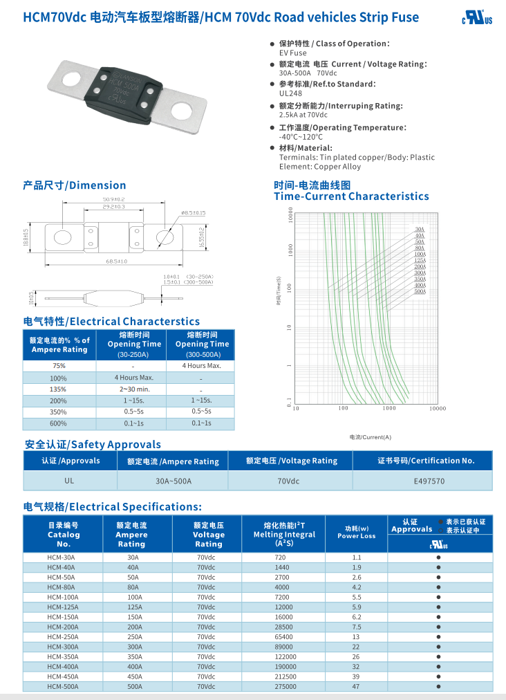 简述: 电动汽车板型熔断器HCM70VDC Road vehiles Strip Fuse